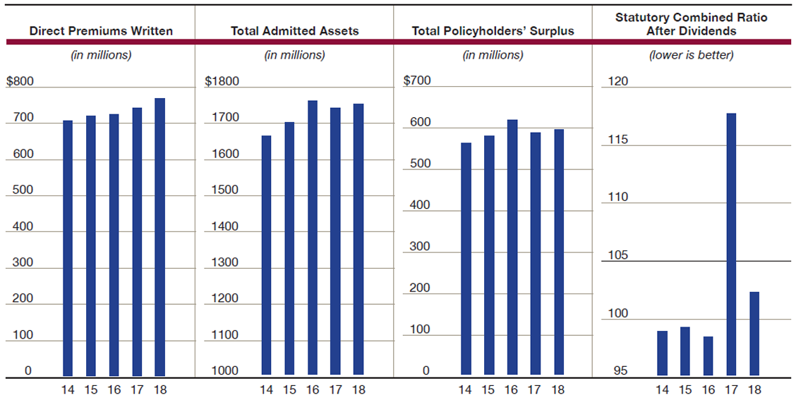 Our reported net combined ratio for the year came in at 102.5, which was 14.4 points better than the 2017 combined ratio. This improvement was primarily attributable to a 12.2 point decrease in the loss and loss adjustment ratio, which was last year unfavorably impacted by a change in estimate for reinsurance recoverables attributable to legacy claims. This was augmented by decreases to our underwriting expense ratio and dividend ratio of 2.0 points and 0.2 point, respectively. Total admitted assets rose slightly from December 31, 2017, to $1.8 billion as of December 31, 2018.